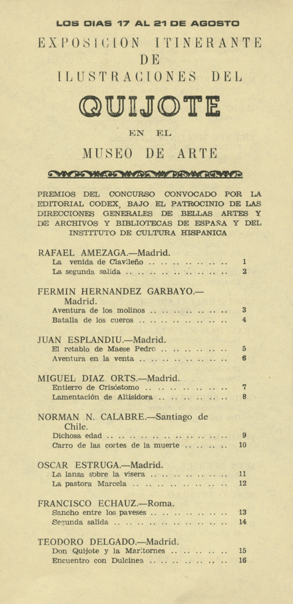 Tríptico de la exposición "Ilustraciones del Quijote", en el Museo de Arte, 1964